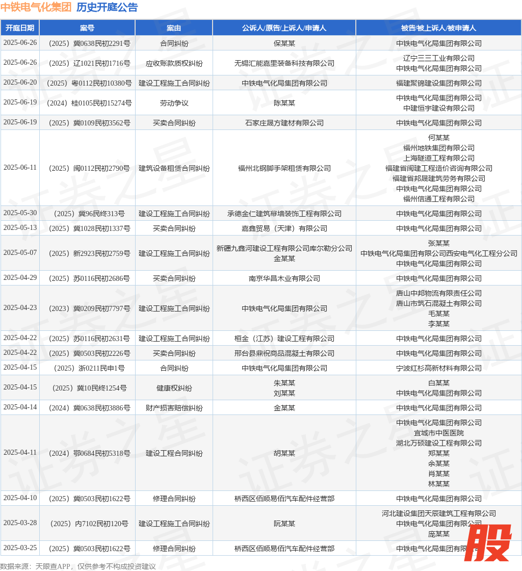 本站消息鼎和网鼎和网,根据天眼查APP显示,近日公布了一则中铁电气化局集团有限公司作为原告/上诉人的开庭公告,详细内容如下: